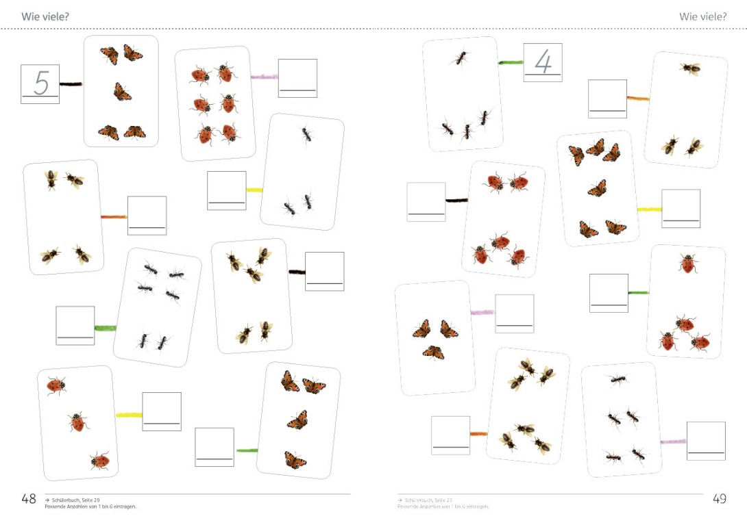 Die Anzahlen auf den Insektenkarten werden Zahlsymbolen zugeordnet.