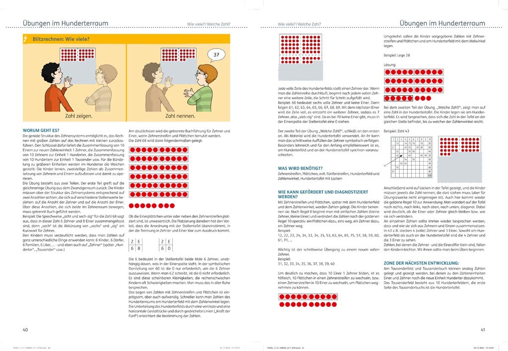 Wenn also ein Kind auch einfache Aufgaben einer Übung nicht beherrscht, wird man vom Leitfaden auf eine vorhergehende analoge Übung gelenkt, die als Stütze dient. Wenn eine Übung schon ganz gut beherrscht wird, kann man in die Zone der nächsten Entwicklung vorstoßen, d.h. versuchsweise Aufgaben aus einer nachfolgenden analogen Übung stellen.