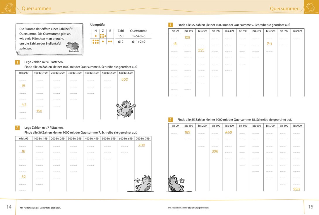 „Igelaufgaben“ lassen sich nicht durch direktes Rechnen, sondern nur durch „Probieren und Kombinieren“ lösen. Die Besonderheit dieser Lösungsstrategie besteht darin, dass sie auch ohne Kenntnis von Lösungsverfahren angewandt werden können. Probieren und kombinieren kann jedes Kind. Die Igelaufgaben in diesen Heften sind aus diesem Grund keineswegs nur für leistungsstarke Kinder gedacht, sondern für alle Kinder. Natürlich benötigen Kinder, die langsamer arbeiten, mehr Zeit und schaffen daher in einer bestimmten Zeit weniger Aufgaben. Trotzdem entwickeln sie dabei ihre Problemlösefähigkeiten. Außerdem lernen sie auch inhaltlich dazu. Die Auswahl der Aufgaben wurde so getroffen, dass auch wichtige Basiskompetenzen (Einspluseins, Einmaleins, Zerlegen von Zahlen) intensiv mitgeübt werden.