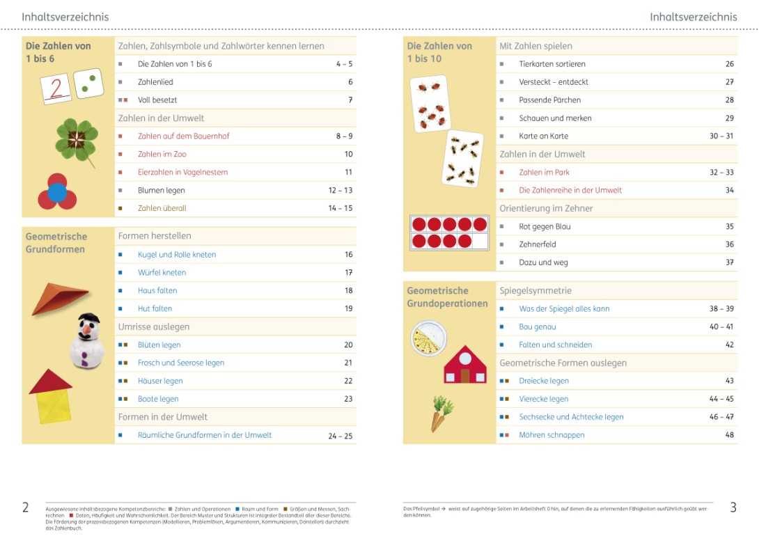 Das Zahlenbuch 0 dient der Förderung folgender Basiskompetenzen, die Voraussetzungen für den Mathematikunterricht der Grundschule sind: