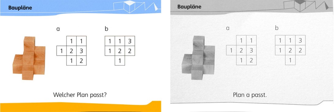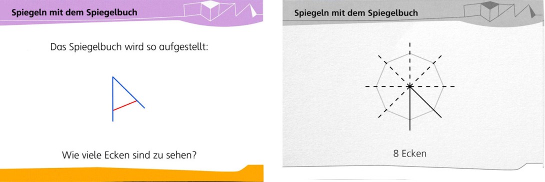 Die handlungsorientierte Grundlegung der Übungen erfolgt im Zahlenbuch und in den geometrischen Zusatzmaterialien (Spiegeln mit dem Spiegel, Spiegeln mit dem Spiegelbuch, Schauen und Bauen).